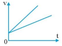 Đồ thị thể hiện độ dốc lớn hơn, gia tốc lớn hơn. Vì đồ thị biểu diễn có 2 đường thẳng khác nhau chứng tỏ đang biểu diễn cho 2 chuyển động, một đường có độ dốc cao hơn (đồng nghĩa với sự thay đổi vận tốc lớn hơn) chứng tỏ có gia tốc lớn hơn.