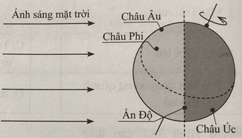 Ở vị trí A người quan sát nhìn thấy Mặt Trời mọc vào lúc sáng sớm. Vì ta thấy chiều quay của Trái Đất ngược chiều kim đồng hồ nên vị trí A sẽ dần dần nhận được ánh sáng Mặt Trời nhiều hơn.