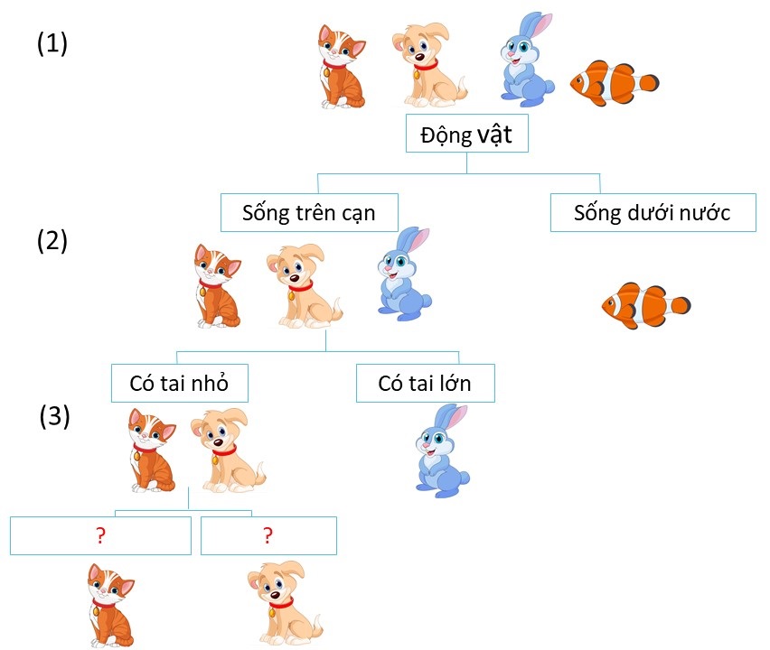 Cho các loài: mèo, thỏ, chim bồ câu, ếch và các đặc điểm sau: