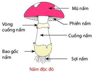 Quán sát hình dưới đây và cho biết, thành phần cấu tạo nào sau đây thường có ở nấm độc mà không có ở nấm ăn được?