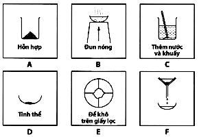 Bạn Hà muốn tách riêng một hỗn hợp gồm cát và muối. Các hình vẽ dưới đây mô tả các bước tiến hành của bạn nhưng chưa đúng thứ tự.
