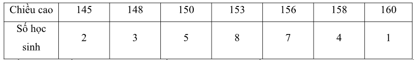 Chiều cao của 30 học sinh lớp 7A (đơn vị: cm) được ghi lại trong bảng sau:
