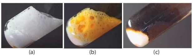 Hình 2: Các muối KCl (a), KBr (b), KI (c) phản ứng với dung dịch H2SO4 đặc