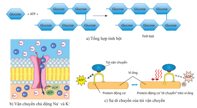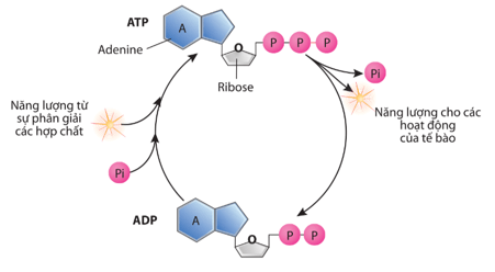 - Phân tử ATP có 3 gốc phosphate. Khi liên kết giữa hai gốc phosphate của ATP bị phá vỡ, năng lượng được chuyển hóa trực tiếp cho các hoạt động năng lượng của tế bào.