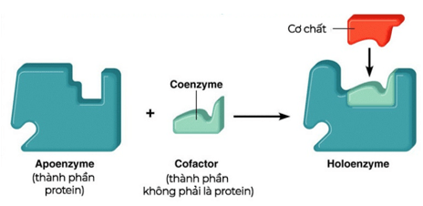 + Một số enzyme còn có thêm thành phần không phải là protein, được gọi là cofactor. Cofactor có thể là ion kim loại như Fe2+, Zn2+, Mg2+ và hợp chất hữu cơ (còn gọi là coenzyme) có nguồn gốc từ vitamin như coenzyme như NAD+, FAD.