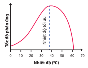 - Khi tăng nhiệt độ, tốc độ phản ứng sẽ tăng và đạt cao nhất ở nhiệt độ tối ưu. Nếu nhiệt độ tăng quá cao vượt qua nhiệt độ tối ưu thì tốc độ phản ứng sẽ giảm do enzyme sẽ bị thay đổi cấu trúc không gian và có thể dẫn đến mất hoạt tính hoàn toàn.