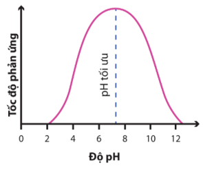 - Khi tăng pH, tốc độ phản ứng sẽ tăng và đạt cao nhất ở độ pH tối ưu, vượt qua pH tối ưu thì tốc độ phản ứng sẽ giảm.