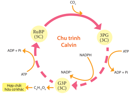 - Bản chất: Trong chu trình này, ATP và NADPH cung cấp năng lượng và điện tử tham gia khử phân tử CO2 thành C6H12O6.