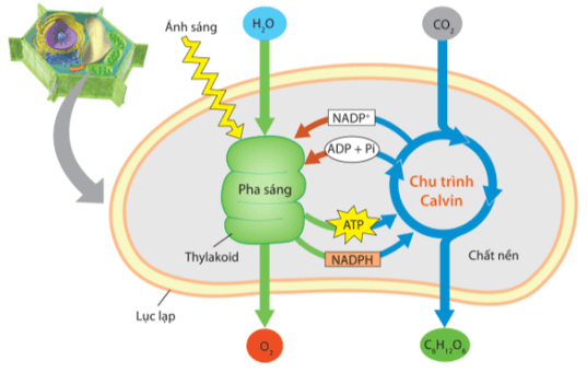 | Sơ đồ tổng quát của quá trình quang tổng hợp diễn ra ở lục lạp |