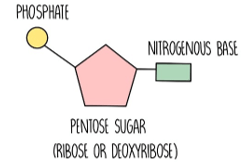+ Nitrogenous base: gồm hai nhóm purine (adenine – A, guanine – G) và pyrimidine (cytosine – C, thymine – T, uracil – U).