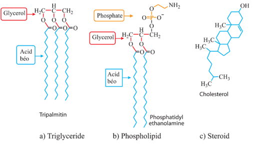 - Lipid là nhóm các phân tử sinh học có cấu tạo hóa học đa dạng, thường không tan trong nước nhưng tan trong các dung môi hữu cơ như ether, acetone.