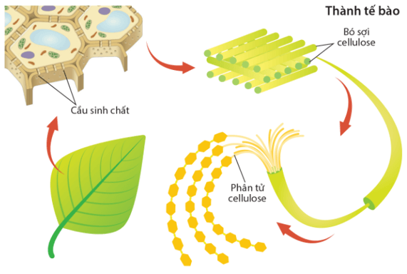 - Cấu tạo: được cấu tạo chủ yếu từ các chuỗi cellulose; ngoài ra, còn có một số loại polysaccharide khác như hemicellulose, pectin. Giữa các tế bào có cầu sinh chất đóng vai trò trao đổi chất giữa các tế bào.