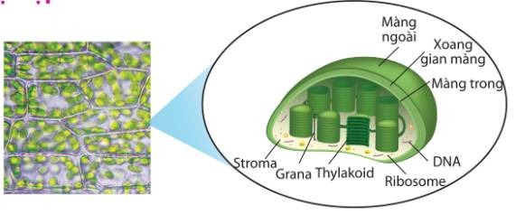 - Vai trò: Lục lạp là bào quan thực hiện chức năng quang hợp (có khả năng hấp thụ và chuyển hóa năng lượng ánh sáng thành năng lượng hóa học).