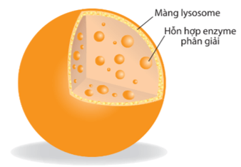 - Cấu tạo: Là bào quan dạng túi, màng đơn, chứa các enzyme thủy phân protein, nucleic acid, carbohydrate, lipid, các bào quan và thậm chí cả các tế bào cần thay thế.