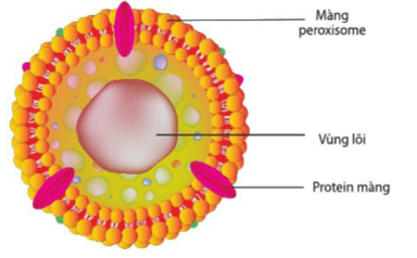 - Cấu tạo: Được bao bọc bởi một màng đơn mỏng, trên màng có protein màng. Trong peroxisome chứa các enzyme phân giải chất độc, H2O2, lipid,…