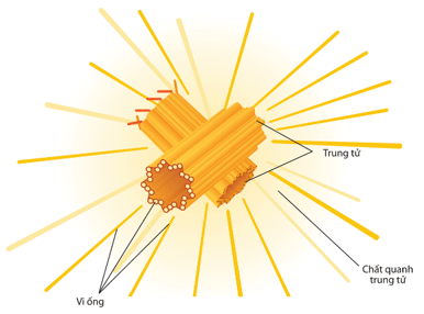 - Cấu tạo: Trung thể là bào quan không có màng, gồm hai trung tử nằm vuông góc với nhau, gồm nhiều bộ ba vi ống xếp thành vòng.