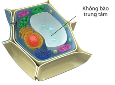 + Ở thực vật: Không bào trung tâm chứa nhiều nước và đóng vai trò cân bằng lượng nước trong tế bào; có thể chứa các chất dự trữ như protein, acid hữu cơ, đường, muối khoáng hoặc chứa chất thải hay sắc tố.