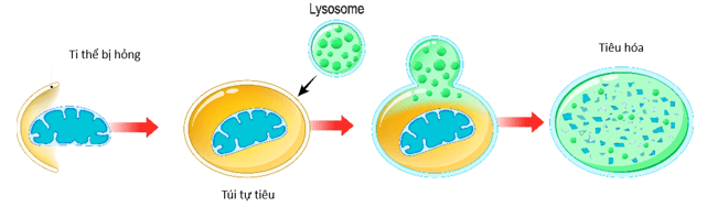 + Thực hiện phân hủy các tế bào già, các tế bào bị tổn thương không còn khả năng phục hồi cũng như các bào quan đã già và các đại phân tử lớn như protein, nucleic acid, lipid,…