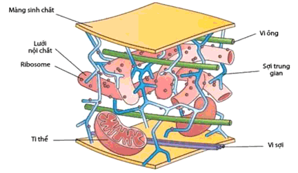 - Cấu tạo: Bộ khung tế bào là mạng lưới gồm vi ống, sợi trung gian và vi sợi, được cấu tạo từ các phân tử protein.