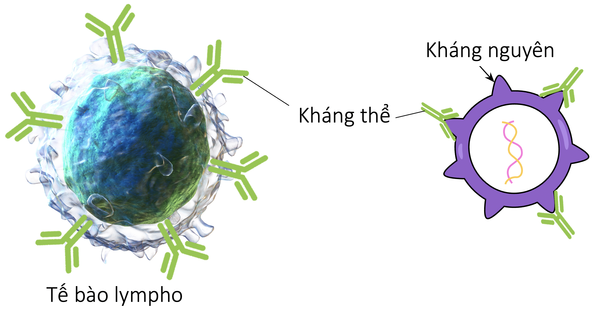 - Các mầm bệnh thường chứa kháng nguyên. Kháng nguyên là các chất lạ khi xâm nhập vào cơ thể sẽ được các bạch cầu nhận diện và sinh ra các kháng thể tương ứng. Kháng thể là chất do bạch cầu tiết ra có khả năng liên kết đặc hiệu với kháng nguyên (giống như chìa khóa phù hợp với ổ khóa).