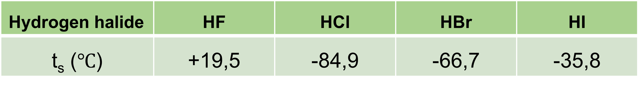 Bảng 1: Nhiệt độ sôi (ts) của các hydrogen halide