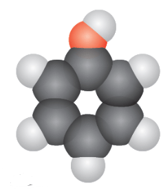 | Mô hình quả cầu -thanh nối của phân tử phenol | Mô hình đặc của phân tử phenol |