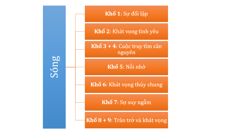 ⇒ Như vậy, hành trình của sóng, của tâm hồn người con gái đáng yêu của sự vận động nhất quán. Đó là hành trình mà khởi đầu là sự từ cái chật hẹp, nhỏ bé để đi tìm đến tình yêu bao la rộng lớn, cuối cùng là khát vọng sống hết mình trong tình yêu.