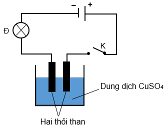 Hiện tượng kim loại đồng tách khỏi dung dịch muối copper (II) sulfate và bám vào điện cực (thỏi than) khi có dòng điện chạy qua chứng tỏ dòng điện có tác dụng hoá học.