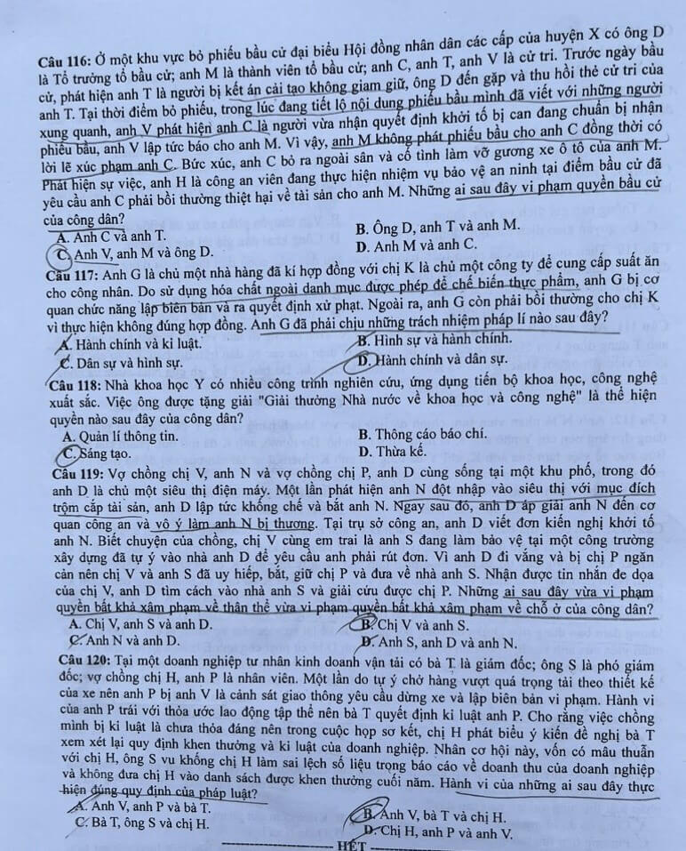 Đáp án đề thi THPT Quốc gia môn GDCD năm 2023 được KhoaHoc tổng hợp cập nhật lại và xin gửi đến bạn đọc FULL đáp án 24 mã đề GDCD THPT quốc gia 2023 cùng tham khảo sau khi kết thúc thời gian làm bài thi (ngày 29/6/2023).