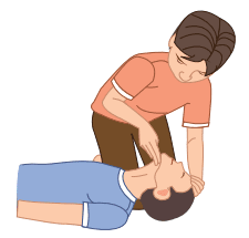 Bước 1: Để người bệnh nằm lên một mặt phẳng cứng, quỳ gối phía bên trái của người bệnh.
