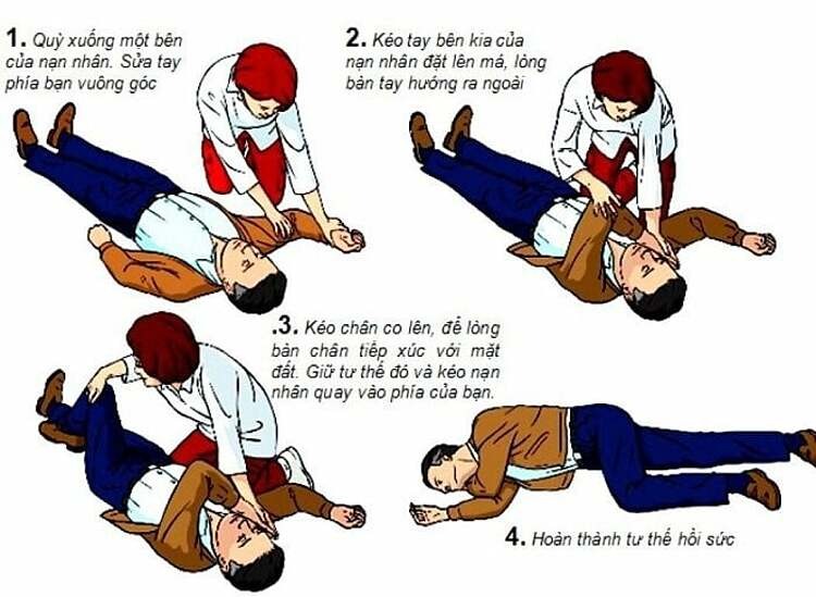 - Cần phải để người bệnh nằm nghiêng ở tư thế hồi sức để đảm bảo được sự lưu thông đường hô hấp vì giúp lưỡi không tụt về phía sau gây tắc nghẽn đường thở và tránh sặc chất nôn vào đường thở.