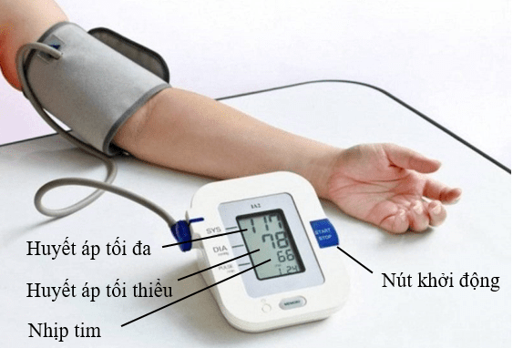 Bước 3: Khi quá trình đo hoàn thành, đọc kết quả hiển thị trên màn hình của máy bao gồm trị số huyết áp tối đa, trị số huyết áp tối thiểu và nhịp tim.