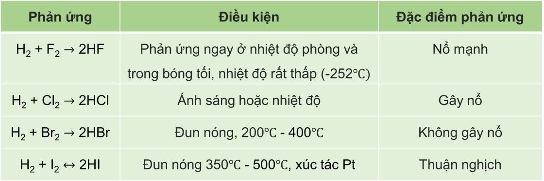 Các halogen phản ứng với hydrogen, tạo thành hydrogen halide: