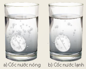 Ví dụ: Lấy hai cốc nước, một cốc nước lạnh và một cốc nước nóng, cho đồng thời vào mỗi cốc một viên C sủi. Phản ứng ở cốc nước nóng xảy ra nhanh hơn.