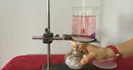 Hình 2: Cốc nước đựng thuốc tím được đun nóng