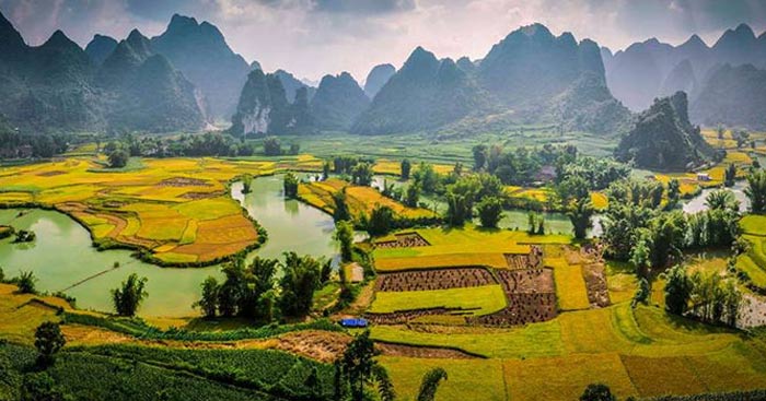 Danh lam thắng cảnh là một phần của di sản văn hóa, làm nên niềm tự hào Việt Nam, bởi vậy, khắc họa khuôn mặt văn hóa dân tộc không thể không nói đến đặc điểm và vai trò của yếu tố văn hóa này. Trong Đất nước, bằng phép liệt kê có chọn lọc, tác giả Nguyễn Khoa Điềm đã điểm tên những địa danh văn hóa tiêu biểu của nước ta ở cả ba miền: Bắc - Trung - Nam. Mỗi địa danh được nhắc đến trong Đất nước là một địa chỉ văn hóa. Núi Vọng Phu, hòn Trống Mái là hai thắng cảnh ở miền Bắc Việt Nam. Hòn Vọng Phu ở Lạng Sơn gắn liền với huyền thoại bồng con chờ chồng hóa đá của nàng Tô Thị. Hòn Trống Mái nằm trong quần thể di tích núi Trường Lệ ở Sầm Sơn, Thanh Hóa, theo tương truyền được hình hành từ sự hóa thân của hai vợ chồng. Hai thắng cảnh nổi tiếng này được tạo tác không chỉ bằng sự tài tình của tạo hóa mà còn được dệt thành từ câu chuyện tình yêu, chuyện nghĩa tình chồng vợ thủy chung, son sắt đã hóa tượng đài đá bất tử, thách thức mọi khắc nghiệt của thời gian. Còn đó vết chân ngựa Thánh Gióng để lại “trăm ao đầm” quanh chân núi Sóc Sơn (Hà Nội); là trùng điệp núi non hùng vĩ của quần thể di tích Đền Hùng với “chín mươi chín con voi” bao quanh núi Hy Cương (Phú Thọ) làm nên di tích lịch sử văn hóa và danh thắng Đền Hùng; là thắng cảnh Hạ Long với những “con cóc, con gà quê hương” mang vẻ đẹp giản dị mà độc đáo. Còn ở miền Trung là Quảng Ngãi với địa danh “Núi Bút, non Nghiên”, một thắng cảnh đẹp mà theo tương truyền gắn với tích anh học trò nghèo hiếu học được cậu ông trời (con cóc) lấy trộm bút và nghiên của trời làm phương tiện đi thi. Dấu tích của những ao hồ và núi đồi do bút rơi và nghiên mực vỡ vung tung tóe khắp nơi bên cạnh núi Kim Nhan ngày nay còn lại ở Quảng Ngãi là minh chứng cho những điềm lành mà Trời đã ban cho vùng đất Quảng Ngãi, để núi Bút, non Nghiên trở thành một biểu tượng về truyền thống hiếu học. Dòng Cửu Long hiền hòa tươi đẹp được tạo thành từ “những con rồng nằm im góp dòng sông xanh thẳm”, bên cạnh các tên đất, tên làng là tên người như: Ông Đốc, Ông Trang, Bà Đen, Bà Điểm đều là một phần của văn hóa Nam Bộ. Với Nguyễn Khoa Điềm, trải dài trên mảnh đất văn hiến hình chữ S đâu đâu cũng ghi dấu tích “dáng hình, lối sống, ao ước ông cha” - là cái hồn của đất, của sông, của núi làm nên những huyền thoại đẹp, thổi hồn cho những ruộng đồng, gò bãi, làm tăng thêm sức hấp dẫn, giá trị của những địa danh, di tích như Vịnh Hạ Long, Hòn Trống Mái, Ông Đốc, Ông Trang, Bà Đen, Bà Điểm… Đây là một phần của gương mặt văn hóa dân tộc, là một nét riêng của danh lam thắng cảnh Việt Nam được lý giải trong Đất nước. “Không gian mênh mông” của văn hóa nói như Nguyễn Khoa Điềm là không gian “dân mình đoàn tụ” đã hiện hữu không chỉ bằng tên đất, tên sông - cái có thực mà còn bằng cả một niềm tâm tưởng vô cùng vô tận của những hoài vọng sâu lắng từ một miền huyền thoại, truyền thuyết mà ở đó dân mình đã xây đắp, bảo vệ, gìn giữ và “hóa thân cho dáng hình xứ sở”, “làm nên Đất nước muôn đời”.