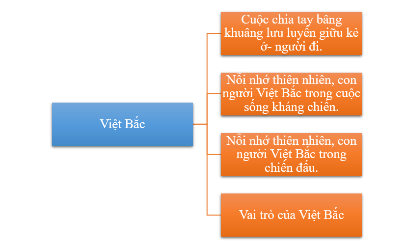 - Đoạn trích “Việt Bắc” miêu tả cuộc chia ly đầy thương nhớ lưu luyến giữa Việt Bắc và những người cán bộ kháng chiến và gợi lại những kỉ niệm kháng chiến anh hùng mà đầy tình nghĩa.