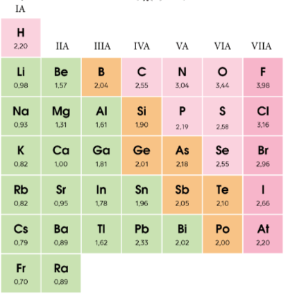 Giá trị độ âm điện của một số nguyên tố nhóm A và quy luật biến đổi độ âm điện